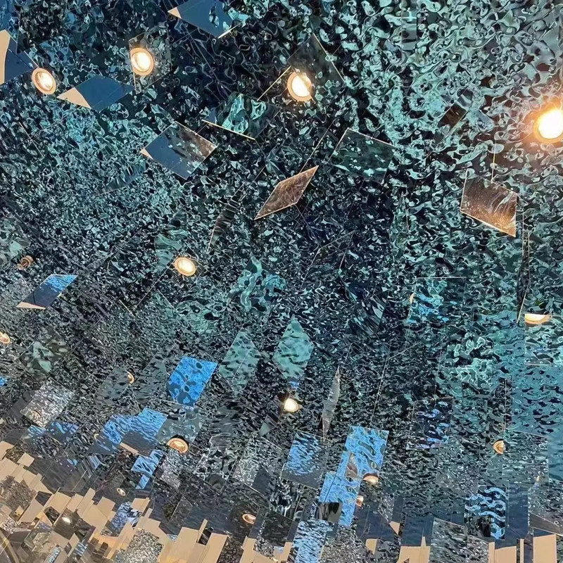 진주강에서 영감을 받아 디자이너는 공간의 위와 아래에서 반짝이는 느낌을 만듭니다.비연금 물 물 파동 스탬프 스테인리스 스틸 시트 현대 디자인 스타일 1비연금 물 물 파동 스탬프 스테인리스 스틸 시트 현대 디자인 스타일 2